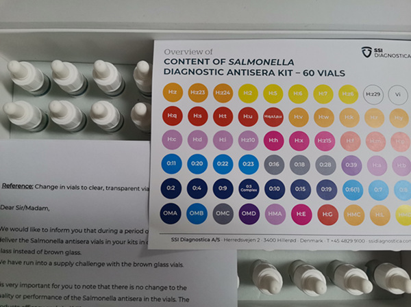 沙門氏菌診斷血清是通過玻片凝集法將培養(yǎng)好的細(xì)菌進(jìn)行分型,確認(rèn)是哪些分型的沙門氏菌。
