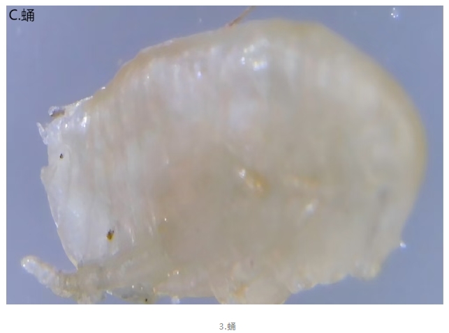 4.肉眼可見快速跳動(dòng)的深褐色小蟲(跳蚤成蟲)。