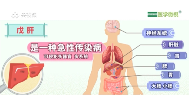 戊肝是由戊型肝炎病毒引起的一種急性病毒性肝炎,主要侵犯肝臟,也可以侵犯其他器官和系統(tǒng),如胃、脾、腎、大腸、小腸、神經(jīng)系統(tǒng)。