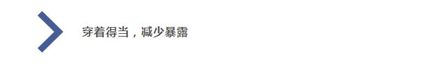2.扎好領(lǐng)口、袖口和褲腳,戴帽子,穿全包腳的鞋,盡量避免皮膚裸露。